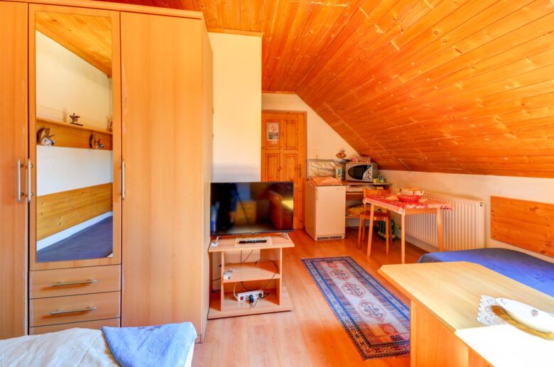 Apartmán 1 je priestranný a pohodlný apartmán s rozlohou 45 m², vhodný až pre 6 osôb. Poskytuje komfortné ubytovanie s vlastnou kúpeľňou, kuchynkou, televízorom a ďalším vybavením, ktoré vám spríjemní pobyt v Ružomberku a okolitej prírode Liptova.