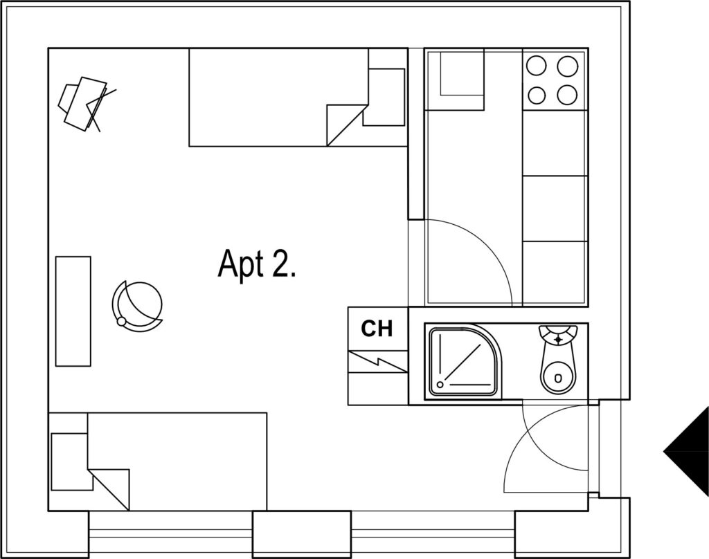 Apartmán 2 ponúka komfortné a útulné ubytovanie vhodné pre páry, rodiny aj menšie skupiny hostí. Súčasťou apartmánu je vlastná kúpeľňa, prakticky vybavená kuchynka a priestor na oddych. Apartmán je ideálnou voľbou pre hostí, ktorí hľadajú pohodlie, súkromie a výbornú polohu.